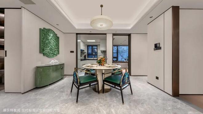 宽阔餐厅空间,可放置圆形餐桌,同时,✅✅建发联发·青云上售楼处电线✅✅预留餐边柜空间,满足更多收纳储物的需求,让质感与实用性兼具。